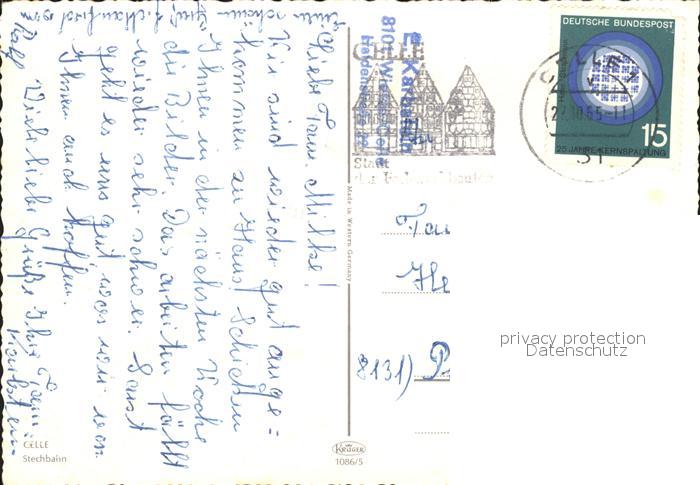 71929512 alte Postkarte Celle Niedersachsen STechbahn postalisch gelaufen Erhaltung siehe scans KatCode: 11110003351006