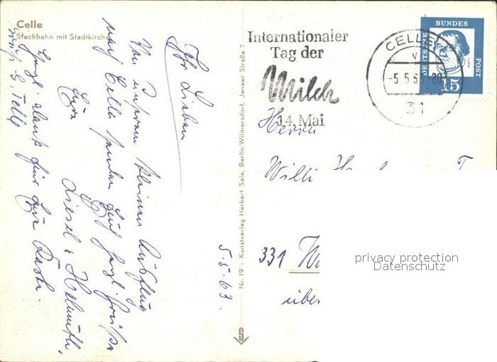 72093736 alte Postkarte Celle Niedersachsen Stechbahn Stadtkirche postalisch gelaufen Erhaltung siehe scans KatCode: 11110003351006
