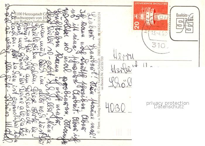 73168331 alte Postkarte Celle Niedersachsen Wappen am Rathaus postalisch gelaufen Erhaltung siehe scans [KathaD81] KatCode: 11110003351006