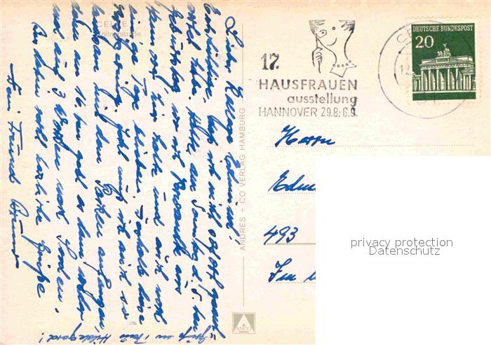 72796293 alte Postkarte Celle Niedersachsen Zoellnerstrasse postalisch gelaufen Erhaltung siehe scans [NatalD47] KatCode: 11110003351006