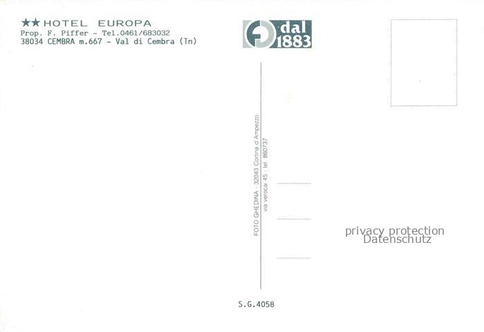 74076332 Cembra Trient Trento Trentino-Alto Adige IT Hotel Europa postalisch nicht gelaufen Erhaltung siehe scans [FriedD77] KatCode: 11240