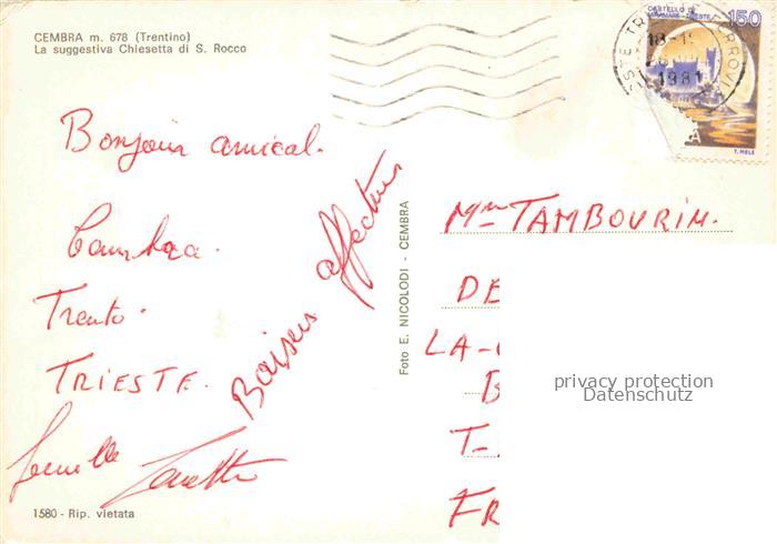 74043293 old postcard Cembra Trient Trento Trentino-Alto Adige IT La suggestiva Chiesetta di San Rocco postalisch gelaufen Erhaltung siehe scans [WerneD78] KatCode: 11240