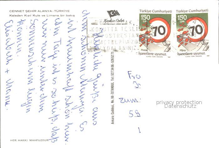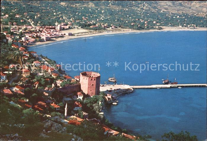 old postcard Cennet Sehir Alanya Kaleden Kizil Kule Limana bakis postalisch gelaufen Erhaltung siehe scans