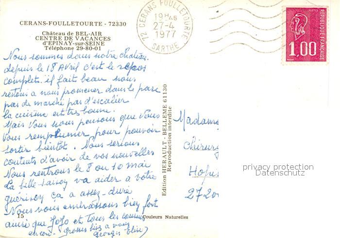13521833 carte postale Cerans-Foulletourte Chateau de Bel Air postalisch gelaufen Erhaltung siehe scans [KathaD81] KatCode: 11170072172051