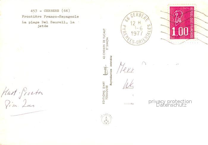 13052972 carte postale Cerbere Grenze Frankreich Spanien Strand Del Saurell postalisch gelaufen Erhaltung siehe scans [KathaD81] KatCode: 11170066166048