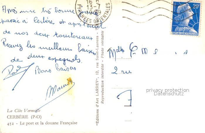 13534782 carte postale Cerbere Le port et la douane Francaise postalisch gelaufen Erhaltung siehe scans [WerneD78] KatCode: 11170066166048