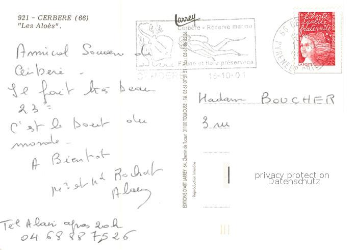 13521854 carte postale Cerbere Les Aloes postalisch gelaufen Erhaltung siehe scans [KathaD81] KatCode: 11170066166048