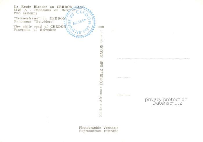 13153616 Cerdon Nantua La Route Blanche Panorama du Belvedere vue aérienne postalisch nicht gelaufen Erhaltung siehe scans [FriedD77] KatCode: 11170001401068