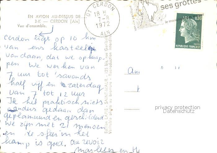 12572936 carte postale Cerdon Nantua Vue aerienne postalisch gelaufen Erhaltung siehe scans [WerneD78] KatCode: 11170001401068