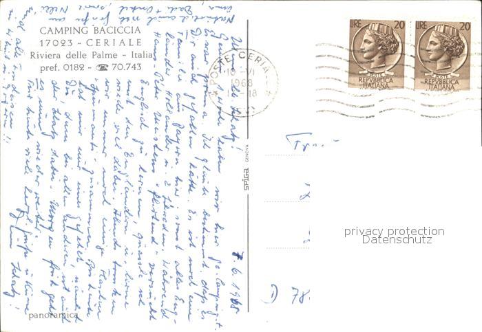 old postcard Ceriale Liguria Camping Baciccia postalisch gelaufen