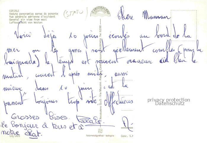 74034259 CERIALE Liguria IT Veduta panoramica aerea da ponente postalisch nicht gelaufen Fliegeraufnahme Erhaltung siehe scans [FriedD77] KatCode: 11240