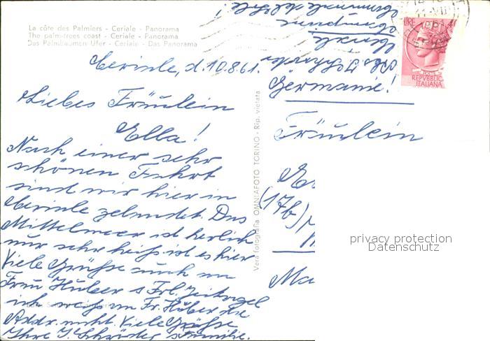 old postcard Ceriale Liguria Panorama postalisch gelaufen Erhaltung siehe scans
