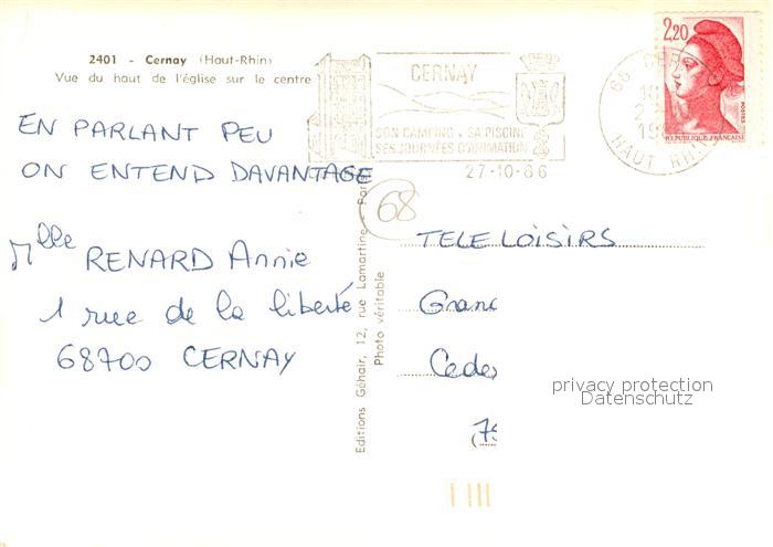 13218415 carte postale Cernay Elsass Vue du haut de l’eglise sur le centre postalisch gelaufen Erhaltung siehe scans [FriedD77] KatCode: 11170068668063