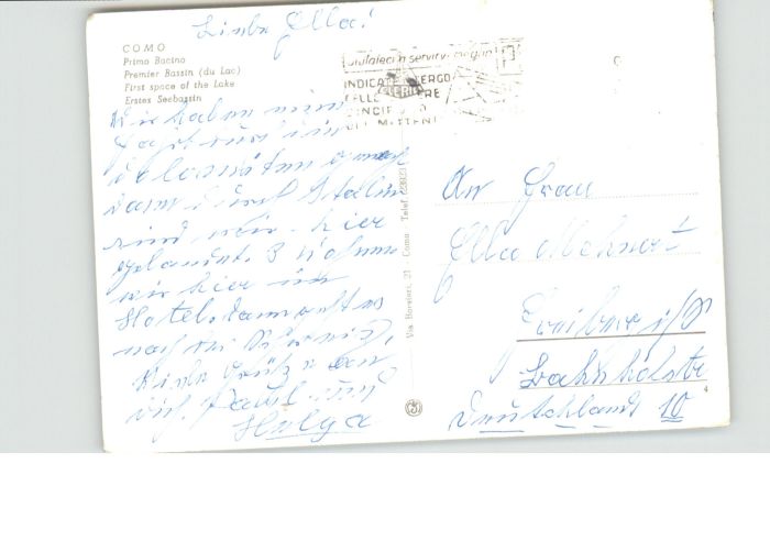 old postcard Cernobbio Lago di Como Como Primo Bacino Seebassin postalisch gelaufen