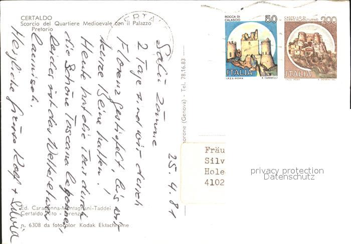 old postcard Certaldo Scorcio del Quartiere Medioevale con il Palazzo Pretorio postalisch gelaufen Erhaltung siehe scans