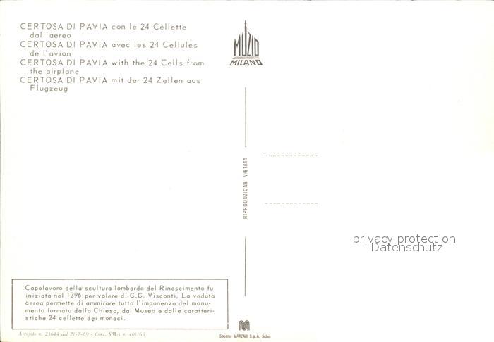 Certosa Di Pavia con le 24 Cellette dall aereo Kloster postalisch nicht gelaufen Erhaltung siehe scans