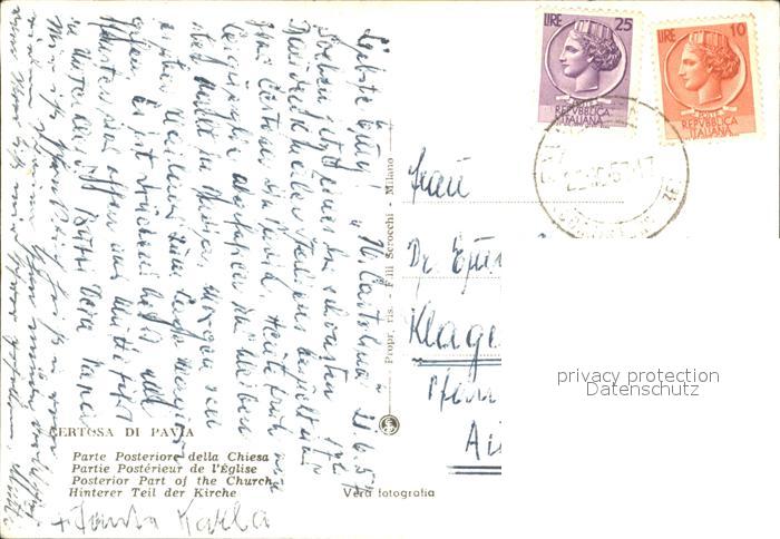 old postcard Certosa Di Pavia Kirche postalisch gelaufen Erhaltung siehe scans