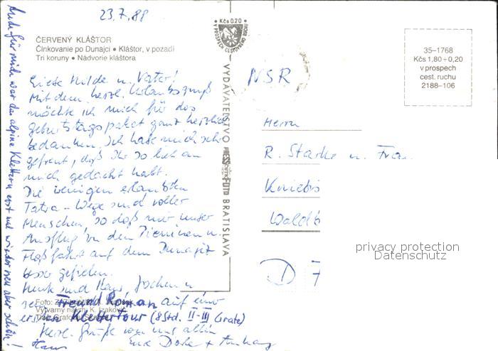 old postcard Cerveny Klastor Seepartei postalisch gelaufen Erhaltung siehe scans