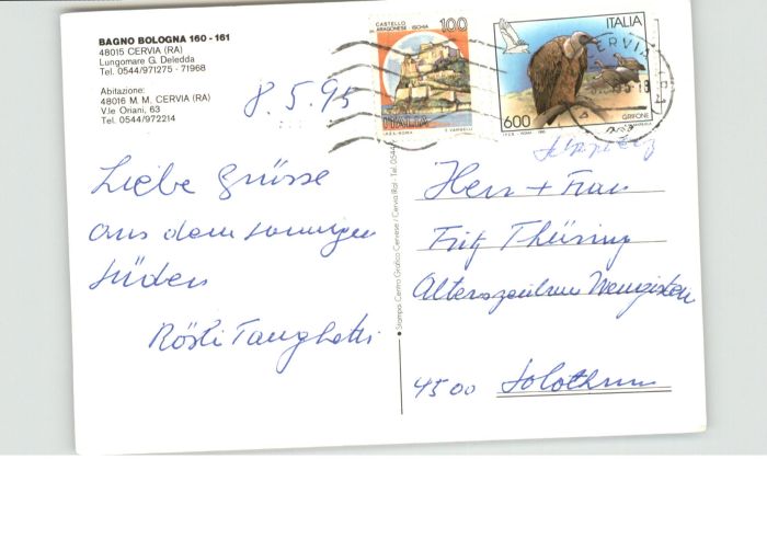 old postcard Cervia Bagno Bologna Lungomare G. Deledda postalisch gelaufen