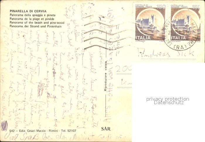 old postcard Cervia Panorama Pinienwald Strand postalisch gelaufen Erhaltung siehe scans