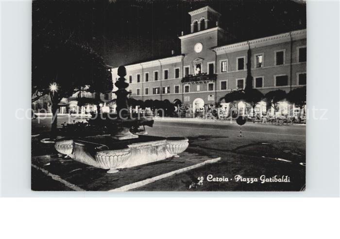 old postcard Cervia Piazza Garibaldi bei Nacht postalisch gelaufen Erhaltung siehe scans