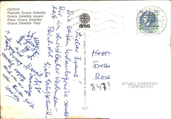 old postcard Cervia Piazzale Grazia Deledda postalisch gelaufen Erhaltung siehe scans