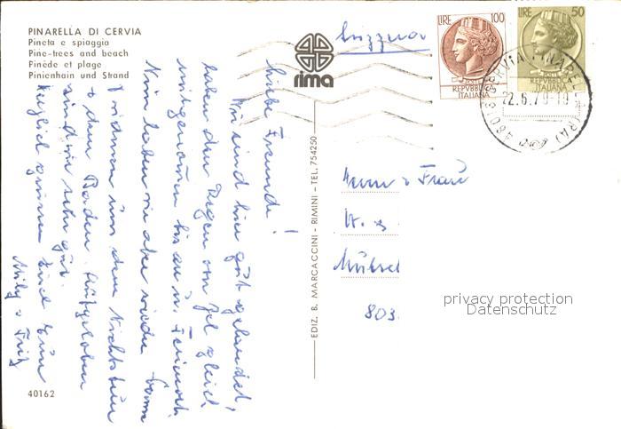old postcard Cervia Pinarella spiaggia Pinienhain Strand postalisch gelaufen Erhaltung siehe scans