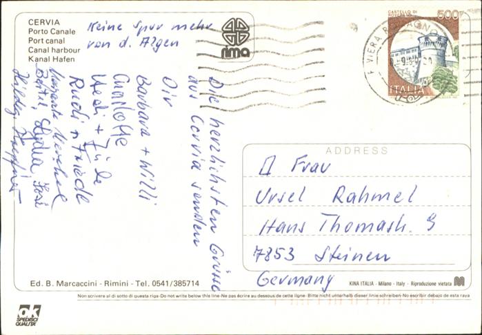 old postcard Cervia Porto Canale postalisch gelaufen
