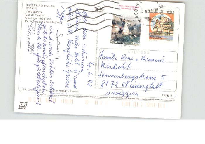 old postcard Cervia Riviera Adriatica Fliegeraufnahme postalisch gelaufen