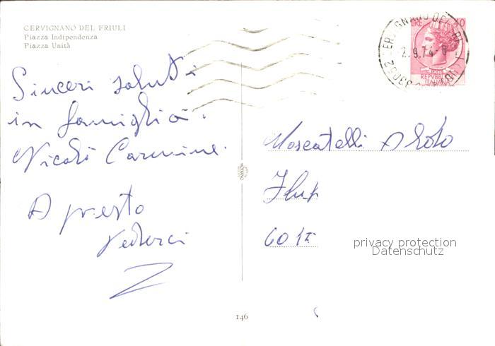 old postcard Cervignano del Friuli Piazza Indipendenza Piazza Unita postalisch gelaufen Erhaltung siehe scans