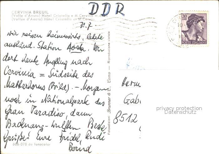 old postcard Cervinia Aosta Hotel Cristallo postalisch gelaufen Erhaltung siehe scans