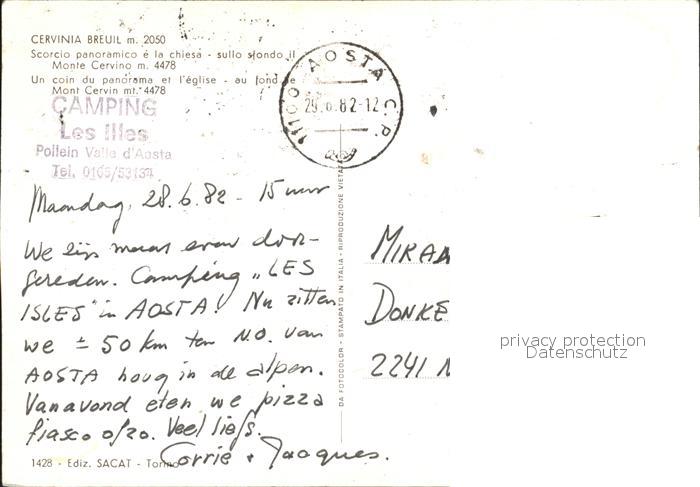 old postcard Cervinia Aosta Panorama postalisch gelaufen Erhaltung siehe scans