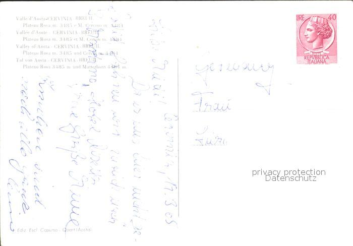 Cervinia Aosta Plateau Rosa mit Matterhorn postalisch nicht gelaufen Erhaltung siehe scans