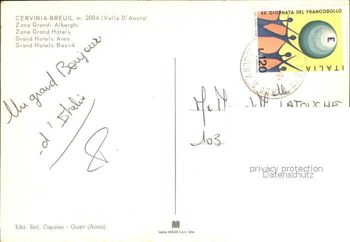 old postcard Cervinia Aosta Zona Grandi Alberghi postalisch gelaufen