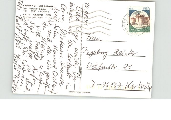 old postcard Cervo Camping Miramare Via Nazario Sauros postalisch gelaufen
