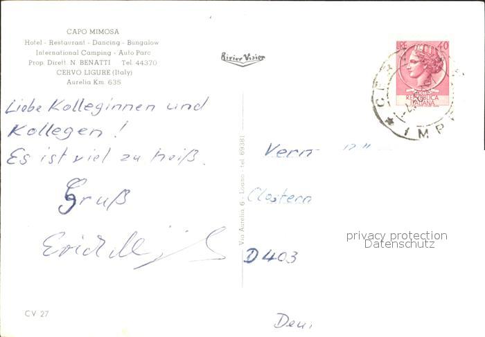 old postcard Cervo Capo Mimosa Strand Abendstimmung postalisch gelaufen Erhaltung siehe scans