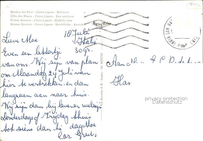 old postcard Cervo Nachtansicht postalisch gelaufen Erhaltung siehe scans