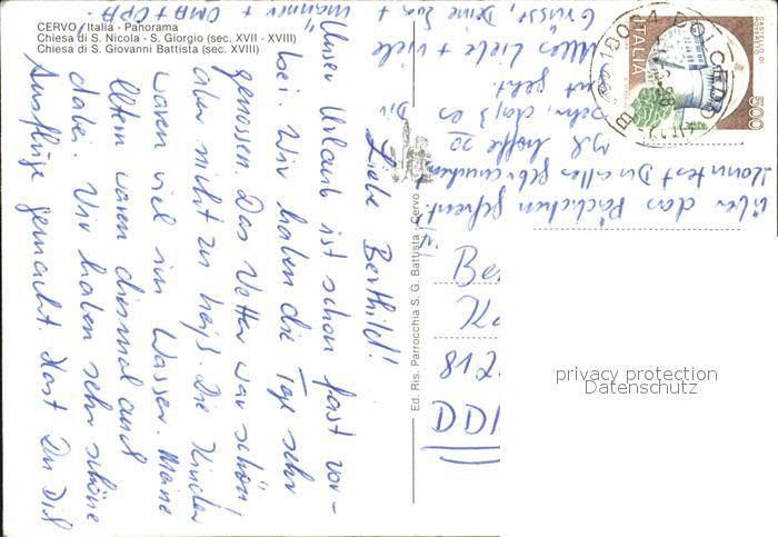 old postcard Cervo Panorama Chiesa di S Nicola S Giorgio S Giovanni Battista postalisch gelaufen Erhaltung siehe scans
