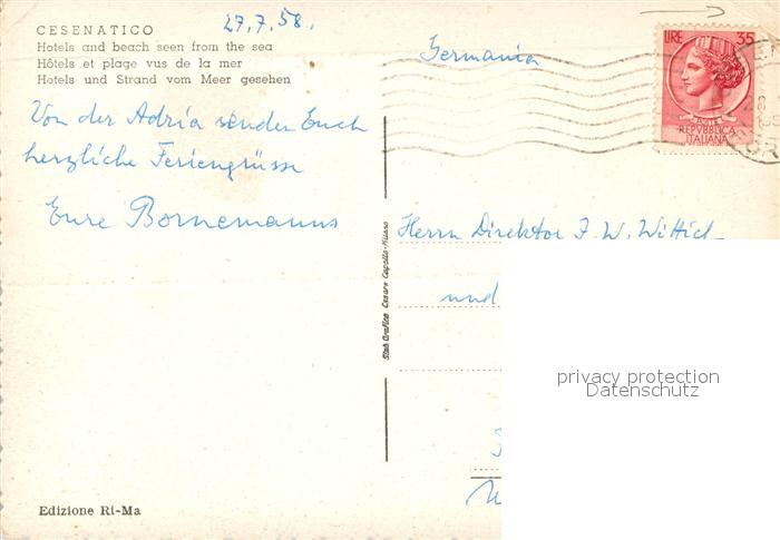 old postcard Cesenatico Alberghi e spiaggio visti dal mare postalisch gelaufen Erhaltung siehe scans [FriedD77]