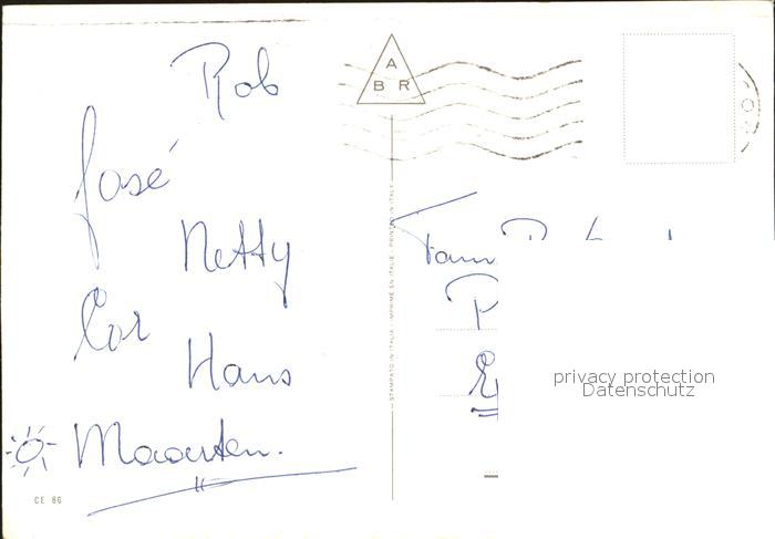 old postcard Cesenatico Fischerboot Hochhaus Segelboot postalisch gelaufen Erhaltung siehe scans