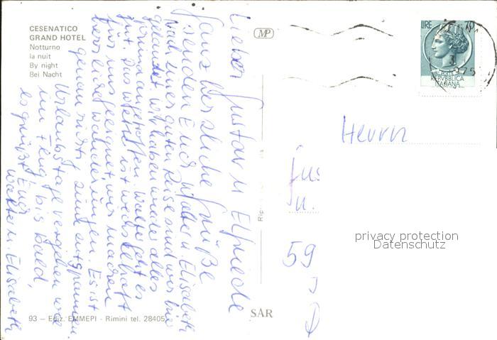 old postcard Cesenatico Grand Hotel Notturno postalisch gelaufen Erhaltung siehe scans