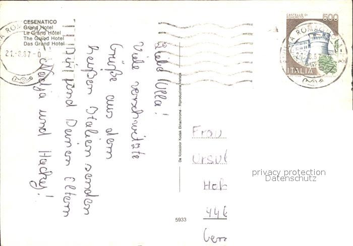 old postcard Cesenatico Grand Hotel postalisch gelaufen Erhaltung siehe scans