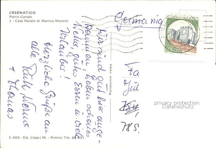 old postcard Cesenatico Hafen Geburtshaus von Marino Moretti postalisch gelaufen Erhaltung siehe scans