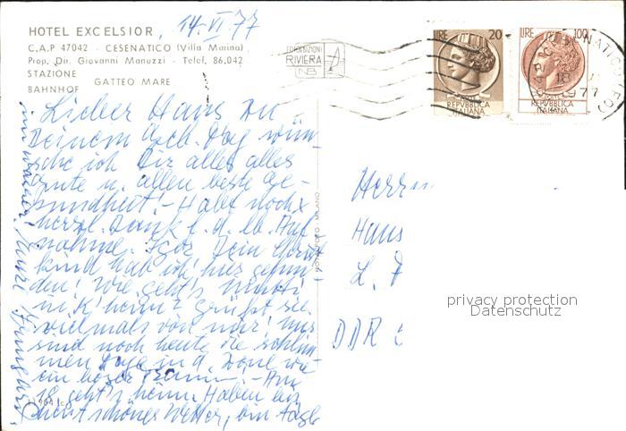 old postcard Cesenatico Hotel Excelsior postalisch gelaufen Erhaltung siehe scans