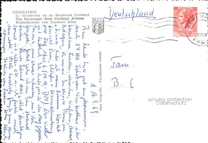old postcard Cesenatico Il Grattacielo visto Viale Carducci postalisch gelaufen Erhaltung siehe scans