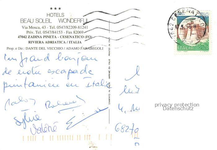 74043234 old postcard CESENATICO IT Hotels Beau Soleil und Wonderful postalisch gelaufen Erhaltung siehe scans [WerneD78] KatCode: 11240