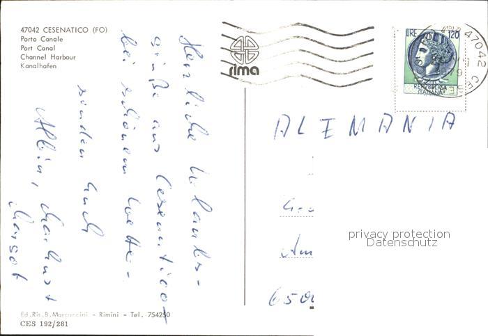 old postcard Cesenatico Kanalhafen postalisch gelaufen Erhaltung siehe scans