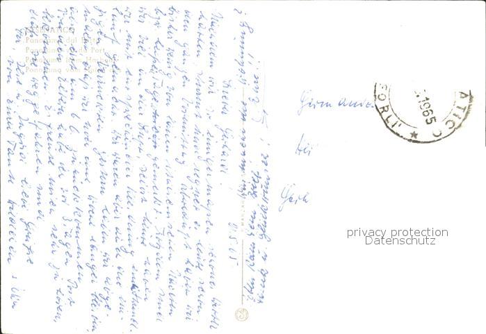 old postcard Cesenatico Panorama dal Porto Hafen Hotel Hochhaus Segelboot postalisch gelaufen Erhaltung siehe scans