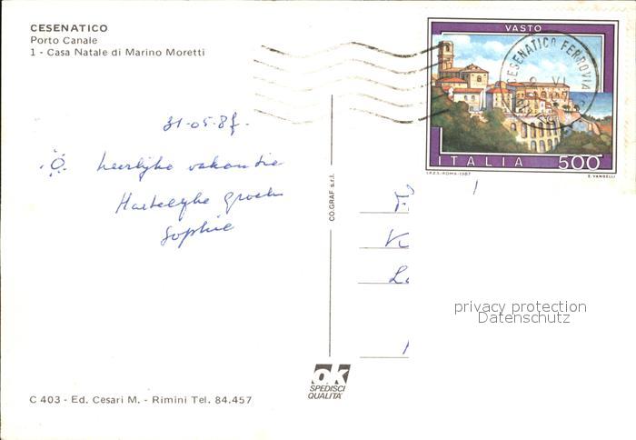 old postcard Cesenatico Porto Canale postalisch gelaufen Erhaltung siehe scans