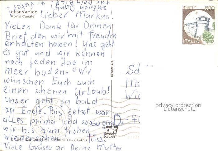 old postcard Cesenatico Porto Canale Kanal Hafen Fischerboote postalisch gelaufen Erhaltung siehe scans